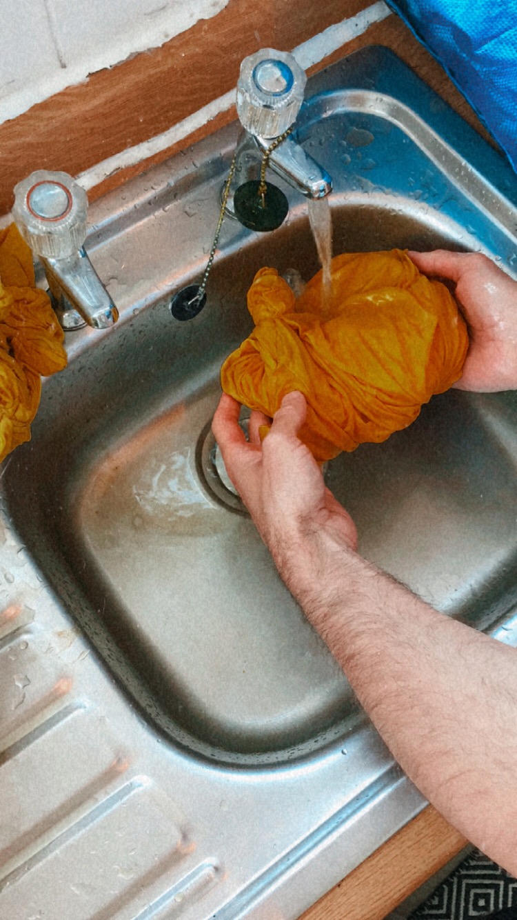 3) Drain your clothes from the vinegar solution, rinse well with clean cold water.